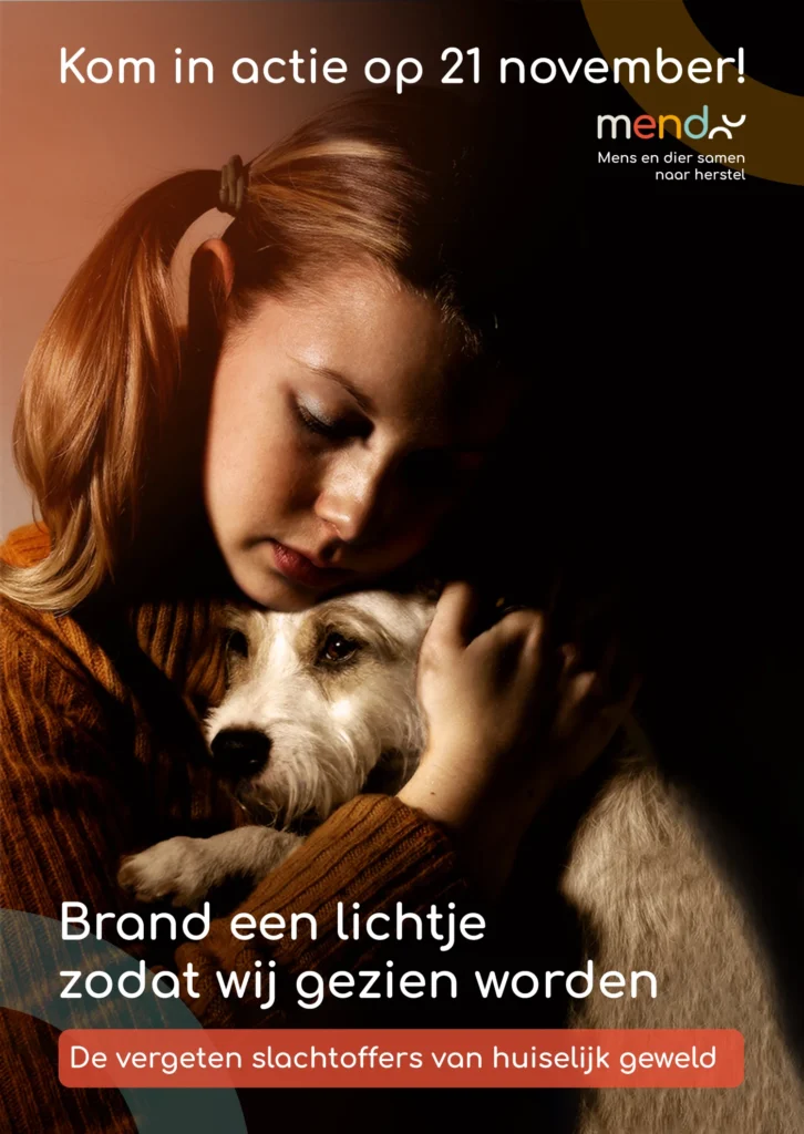 Op 21 november, tijdens de Week tegen Kindermishandeling, vraagt Mendoo aandacht voor de vergeten slachtoffers van huiselijk geweld: kinderen en huisdieren.